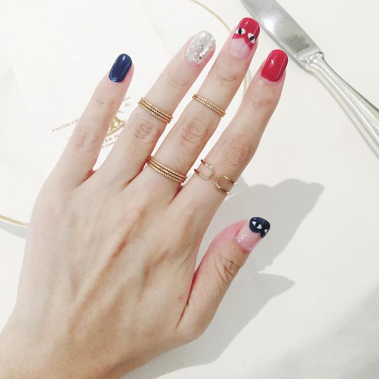 另外,一些欧美奢侈品大牌的Logo早就已经画到了指甲上,但是换一个风格又会不一样,像是以下这些走日系风格的Logo Nail。