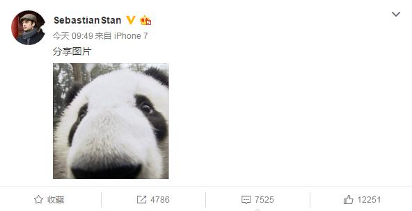 今日上午,塞巴斯蒂安又晒出一张迷之角度的熊猫照片。