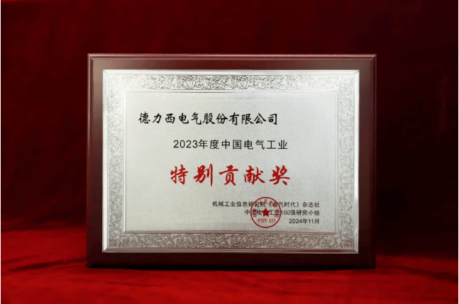 德力西电气再度跻身“中国电气工业100强”榜单,并斩获“2024中国电气工业领军企业TOP10”“2024中国电气工业数智化创新解决方案TOP10”“中国电气工业特别贡献企业”殊荣。