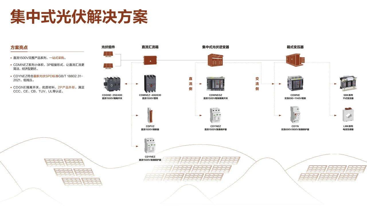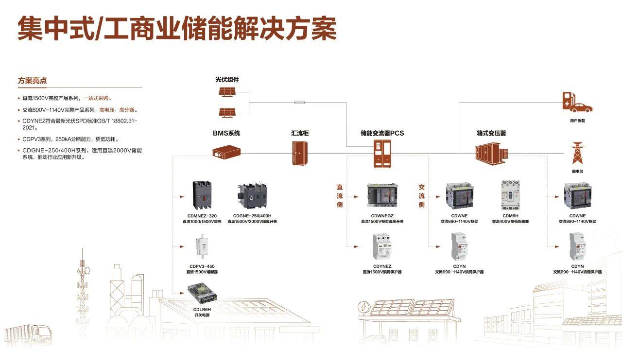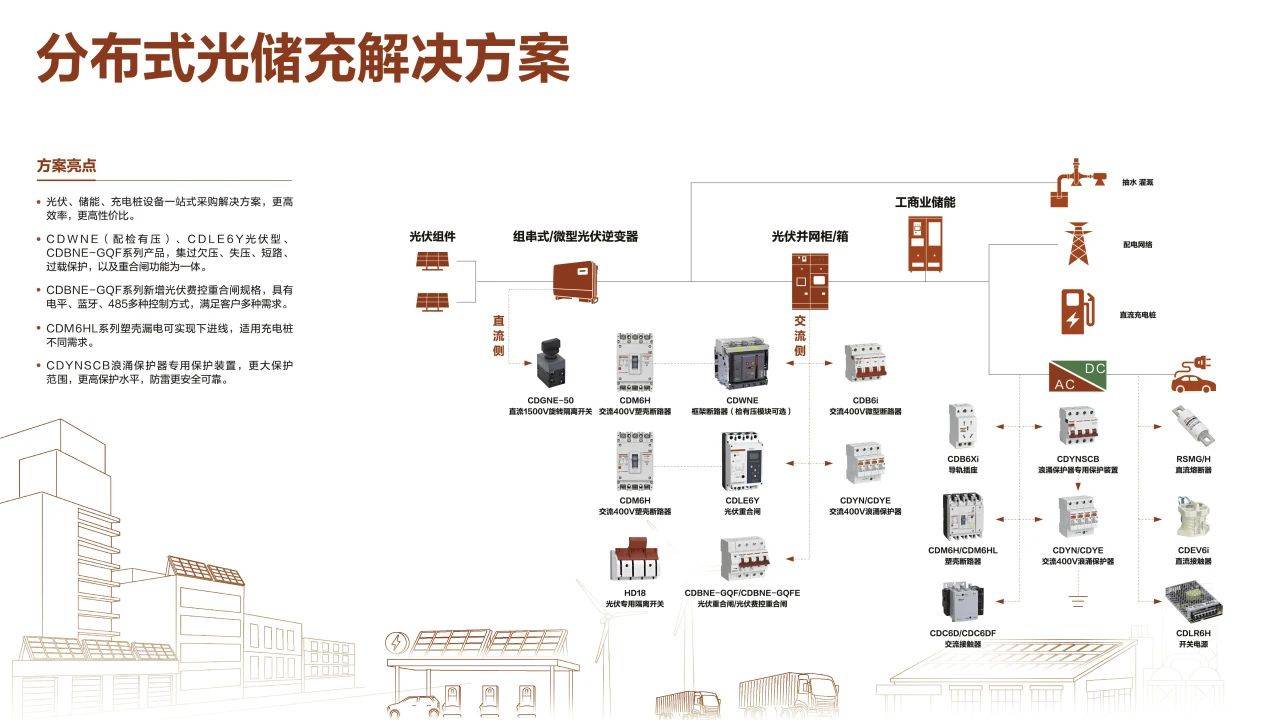 除了自主研发的绿色创新产品,德力西电气还提供全场景绿色解决方案,旨在以系统化的方式为客户创造更大价值。一站式解决方案涵盖了集中式光伏、组串式光伏、分布式光储充、集中式储能、工商业储能、户用储能六大应用场景,确保从客户需求出发,对产品性能及要求进行精准设计与优化。