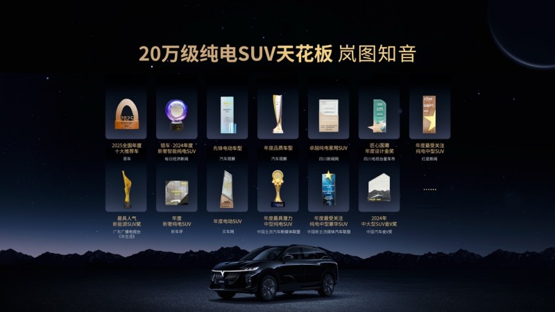 岚图知音以坚实可靠的技术底蕴与实打实的质价比,精准满足每位用户的诉求。硬核实力,表里如一,多达10余项的重量级奖项是对其卓越产品力的最好证明,它也凭借19.69万-23.69万的价格,重塑了20万纯电SUV标准,让安全可靠、实用便捷的岚图知音惠及更多用户。
