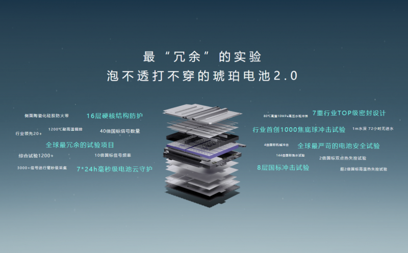 为坚守安全红线,岚图知音电池还经过安全试验标准测试,比如8倍行业标准的1000焦底球冲击试验、2倍于国标的双热点失控试验、超2倍国标的高温热失控试验等严苛考验,以不进水、不漏液、不起火、不爆炸、不热扩散的“5大安全极限”,杜绝了一切电池安全隐患,为广大用户带来了高枕无忧的用车体验,安全性能值得信赖。