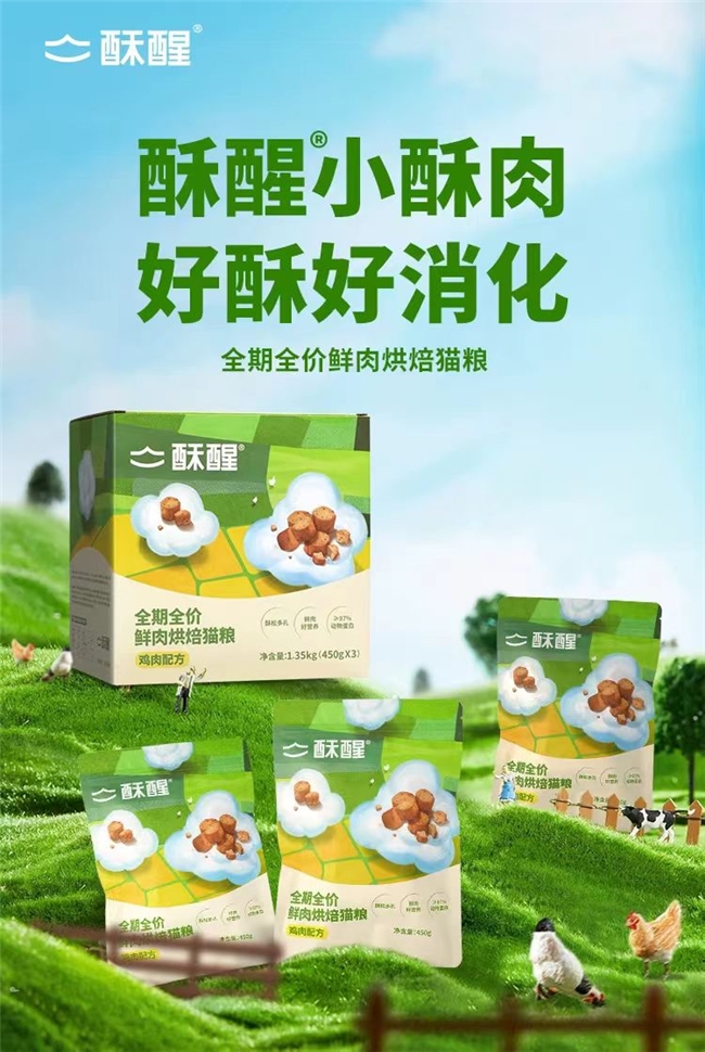 酥醒,代表了“万物复酥,活力觉醒”。酥醒的产品也真正做到了“酥醒”二字,烘焙猫粮、冻干猫粮、犬粮均采用创新二代烘焙生产工艺,低温保留了更全面的营养,长时间的慢烘,使口感更加干爽酥脆。例如,热销爆款酥醒鲜肉烘焙猫粮,许多消费者都表示这款猫粮口感酥脆,营养全面。这款猫粮的动物蛋白占比超97%,食材和营养素均可溯源,确保每一口都是安全健康的。此外,专研草本配方,添加苜蓿草颗粒、车前子、菊苣根粉,帮助猫咪温和排毛,促进猫咪肠道蠕动,多为呵护猫咪健康。