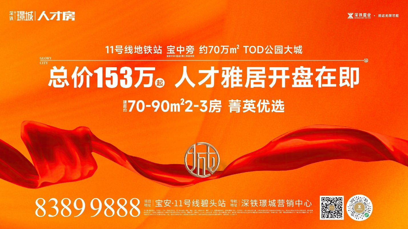 与此同时,已于11月16日启动认购的深铁璟城的人才房项目也备受关注。该项目位于宝安区松岗街道,占地面积约33万平方米,建筑面积约72万平方米,集商品房住宅、可售型人才房、缤纷商业、运动公园等于一体。此次推出的首批可售型人才房,分别为建筑面积约90平方米三房以及70平方米两房,共计房源738套,开盘价约2.4万元/平方米。