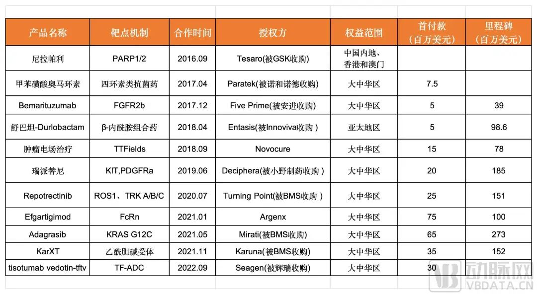 再鼎医药近几年主要License-in项目,据公开信息收集整理
