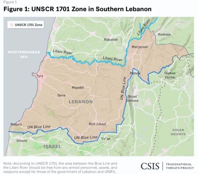 根据2006年联合国安理会的第1701号决议,在利塔尼河南岸到“蓝线”之间的区域内,只有黎巴嫩政府能部署武装人员和武器,联黎部队负责在该地区监督停火。但该决议并没有完全执行,黎巴嫩真主党继续在利塔尼河以南地区设军事据点,以色列则频繁向该地区派无人机和战机。