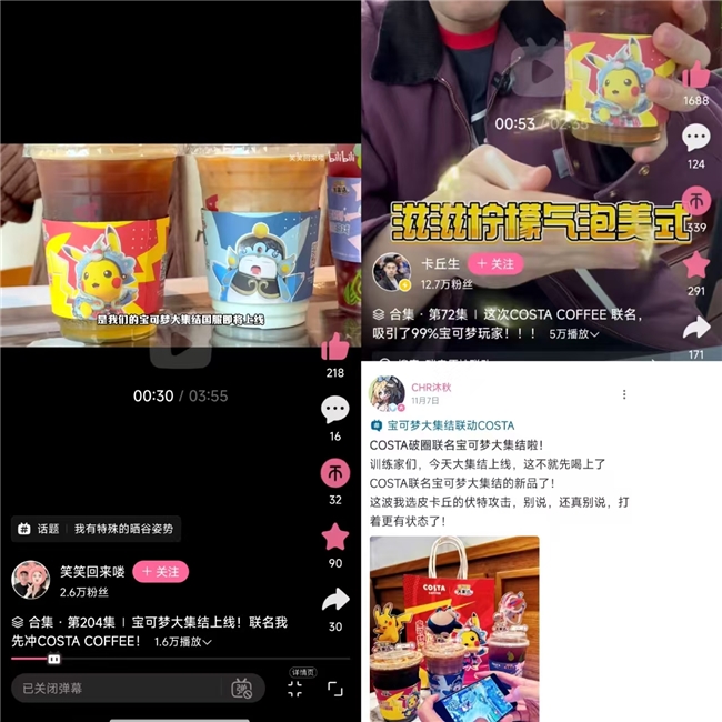 近期,咖世家COSTA COFFEE(以下简称“COSTA COFFEE”)联名热门IP《宝可梦大集结》,从产品、周边到体验等多个维度进行跨界创新,吸引了大批粉丝及玩家的关注,其中包括了如宝可梦骨灰粉@卡丘生、《宝可梦大集结》冠军@ CHR沐秋、以及《宝可梦大集结》官方解说嘉宾@霍霍等圈层影响力大咖。他们不仅线下打卡体验,还在小红书、B站等社交平台上积极分享,还有线下门店见面会活动,请来了特邀嘉宾皮卡丘,让门店打卡变得好玩、有趣、好拍,进一步加速了传播声量的扩散,引发了更多粉丝玩家的跟风打卡。