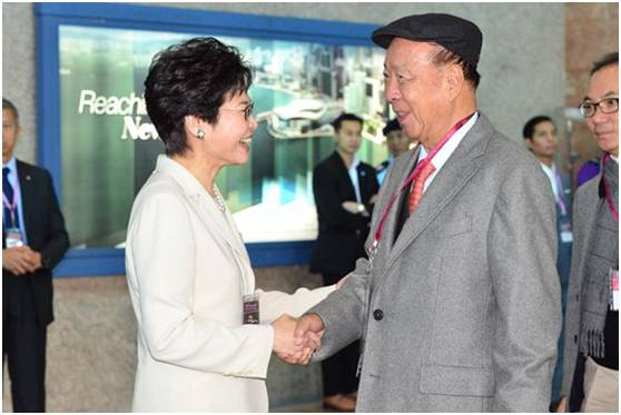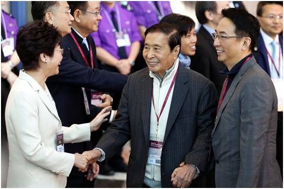 (李兆基及儿子李家杰,与林郑月娥打招呼)