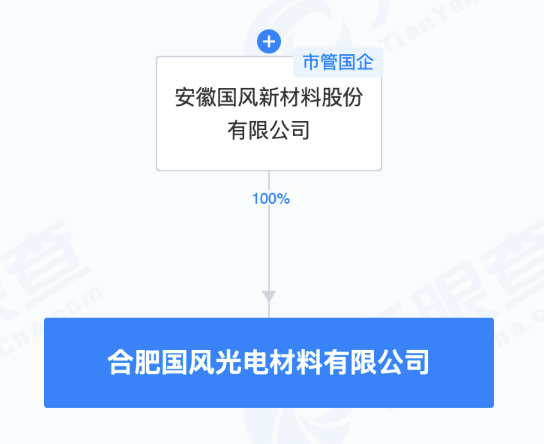 天眼查APP显示,近日,合肥国风光电材料有限公司成立,法定代表人为刘振华,注册资本4亿元,经营范围包含:电子专用材料销售;功能玻璃和新型光学材料销售;光学玻璃制造;光学玻璃销售等。天眼查股权穿透显示,该公司由国风新材全资持股。