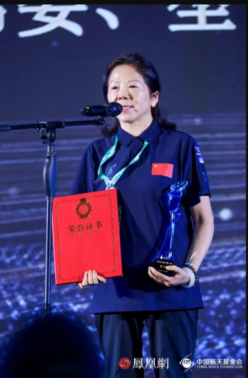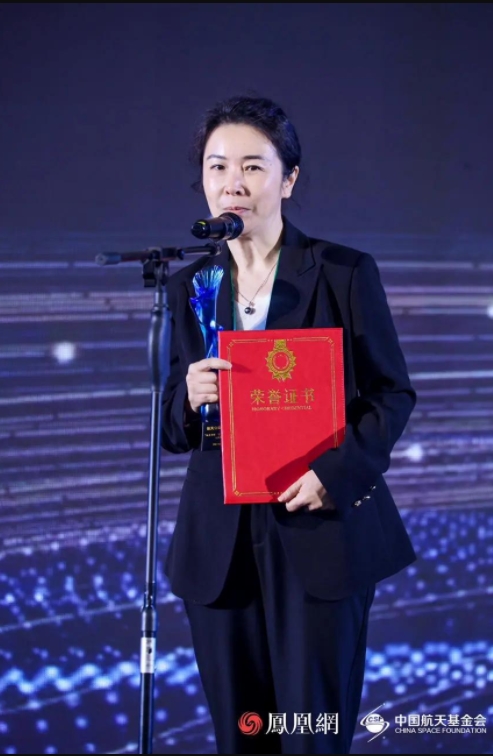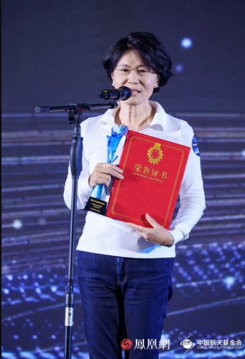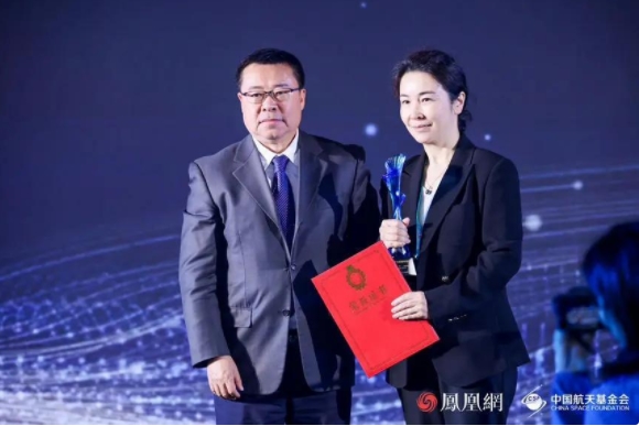 中国宇航学会副理事长兼秘书长王一然为领奖代表颁奖