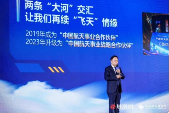 在推动航天事业发展和航天公益实践的道路上,许多有社会责任感的企业也已参与其中。洋河股份副总裁张学谦以《赓续家国志,共舞航天“梦”》为题发表演讲。他表示,作为中国白酒品牌中第一家坚持传播航天、坚定支持航天的企业,在中国科技与世界的链接上,在仰望星辰大海的征途上,洋河始终形影相伴,积极参与助力航天科普教育,播下航天梦的种子。未来,洋河还将继续与中国航天人一起携手并进,大联合、大协作、大发展。