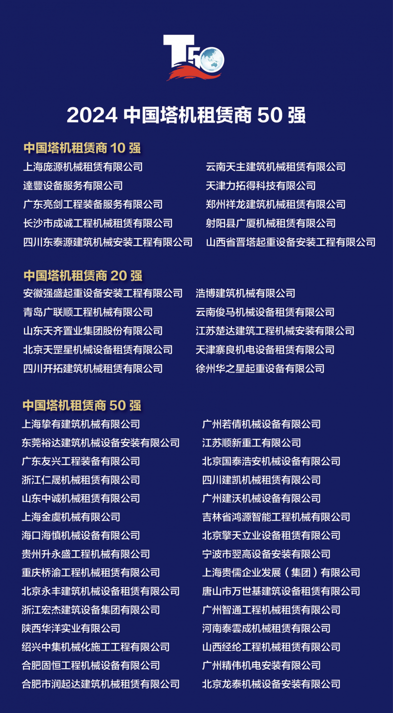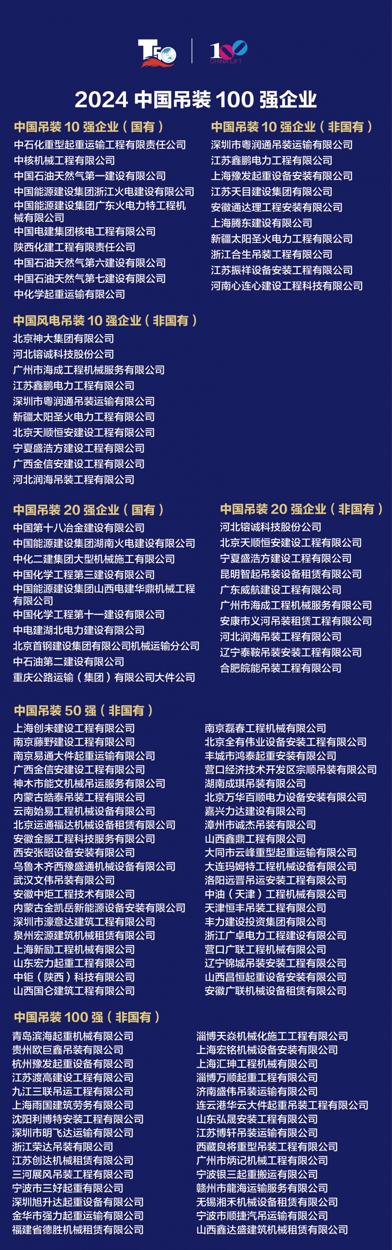 会上发布了“2024中国吊装100强企业”、“2024中国基础施工企业50强”、“2024中国塔机租赁商50强”以及“2024中国高空作业设备租赁商50强”等榜单。