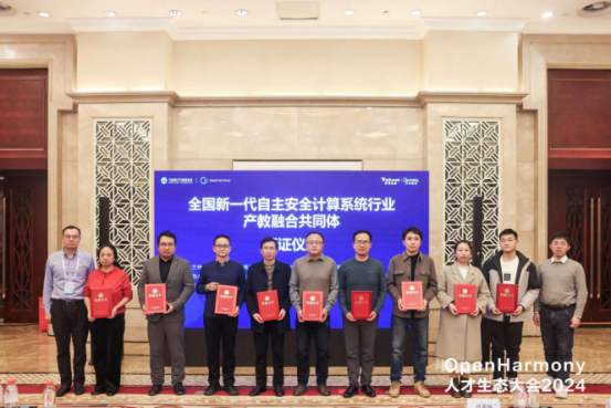 为进一步深化OpenHarmony产教融合,构建校企之间更加紧密的协同创新共同体和产业发展共同体,现场举行了OpenHarmony高校合作签约仪式及新一代自主安全计算系统行业产教融合共同体新增成员单位颁证仪式。