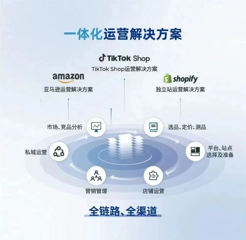 全渠道是指,基于亚马逊的全球布局和市场机会,TikTok Shop社交电商的渠道红利,以及沃尔玛、美客多等本土化电商平台的机会,飞书逸途首批打通了亚马逊、独立站、TikTok Shop等渠道的数据,帮助商家一体化入驻,一体化运营。