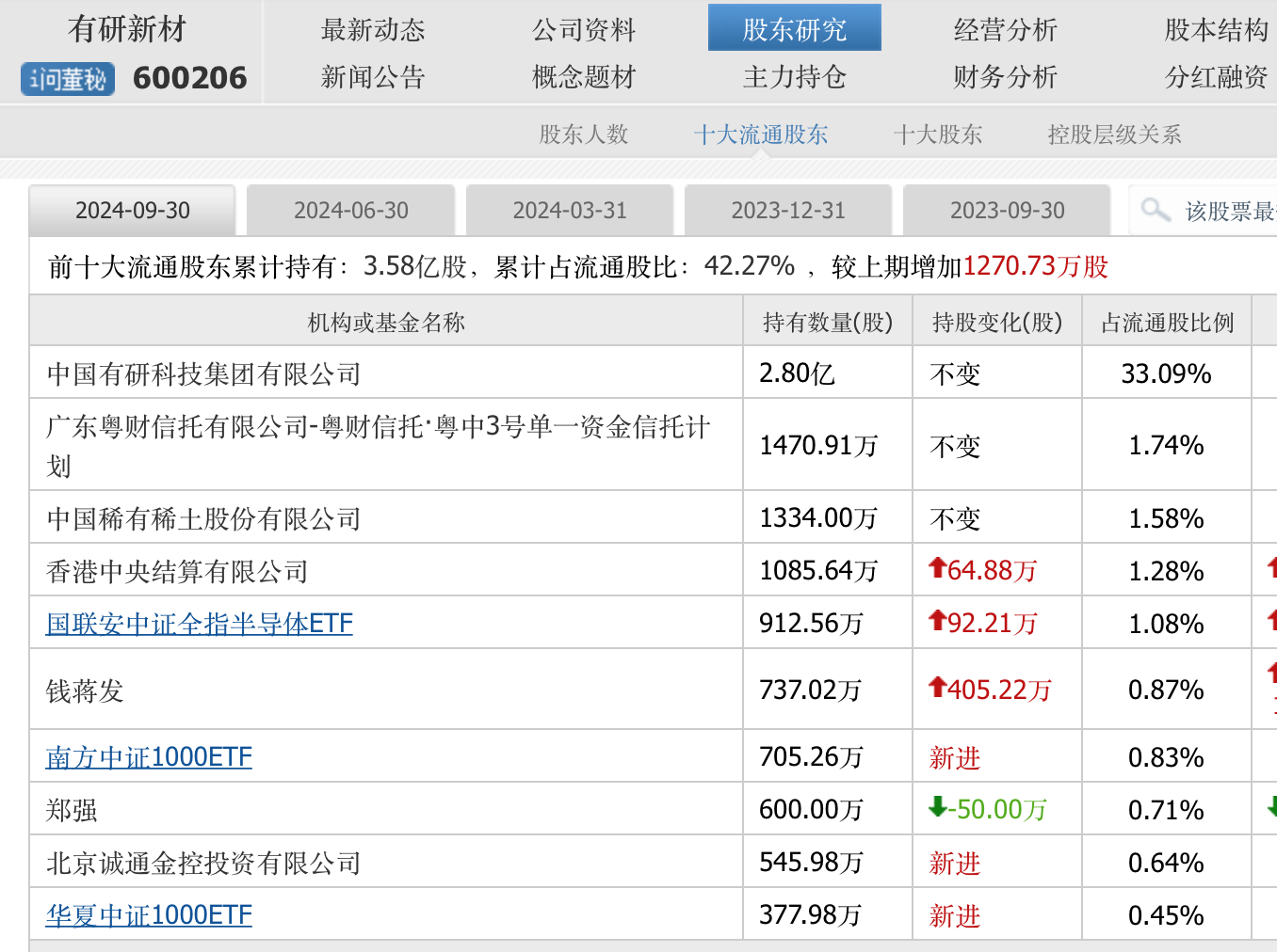 有研新材上市于1999年3月19日,从事电子薄膜及贵金属材料、稀土材料、红外光学及光电材料、生物医用材料研究、开发、生产、销售,2024年前三季度营业收入和净利润分别为67.6亿元和1.15亿元。