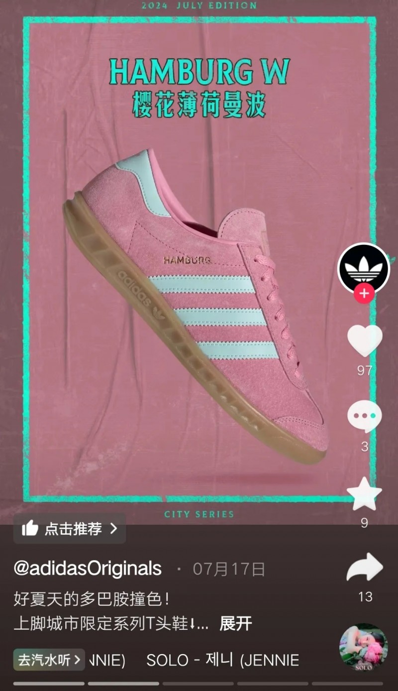 针对大盘备货,抖音电商每年还会为商家提供春夏和秋冬两次服饰趋势备货指南,并结合海量的热点趋势与品牌商家做共创。例如阿迪达斯结合今年春季「薄荷曼波」热点趋势,联合抖音超级品牌日营销IP,用一款薄荷色和樱花色相间的板鞋实现了全网声量、销量的双重爆发。