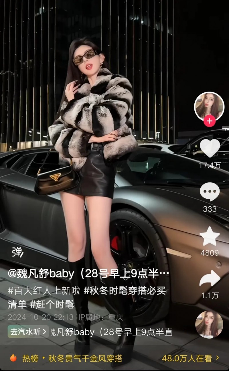 魏凡舒发布的水貂外套穿搭爆款短视频