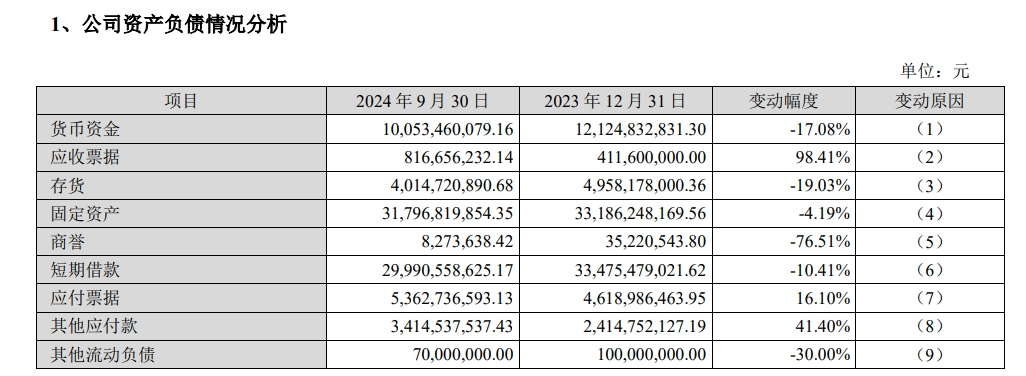 从晨鸣纸业三季报的资产负债表来看,截至9月30日,公司有货币资金100.53亿元,公司的应收票据为8.17亿元,存货和固定资产分别为40.14亿元、317.97亿元,但需要支付的短期借款为299.9亿元,应付票据为53.63亿元,其他应付款为34.14亿元,其他流动负债为0.7亿元。