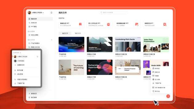 自定义的模板发布之后,进入到AI生成PPT环节,它会自动将设定好的品牌元素应用到AI生成的每一页PPT中,既保证了品牌展示的一致性,又大幅提升了工作效率。