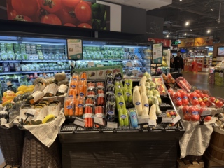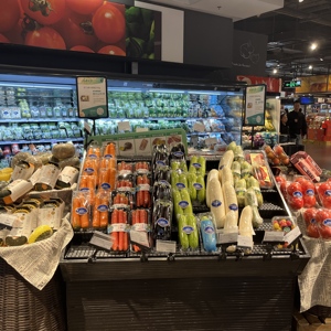 通常对于一家大型超市来说,摆放在一进门最醒目位置的通常是两种商品——自带流量的稀罕货,例如每斤上百元的进口榴莲和车厘子,以及低价的大路货,例如每斤0.59元的冬储大白菜。