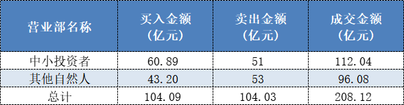 根据Wind数据,双成药业相应时间的龙虎榜中,中小投资者和其他自然人的成交金额分别为112.04亿元和96.08亿元,合计为208.12亿元,恰好与前述投资者分类营业部同期的成交数据相吻合。这也意味着前期双成药业的大涨行情中,大部分都是散户在参与。