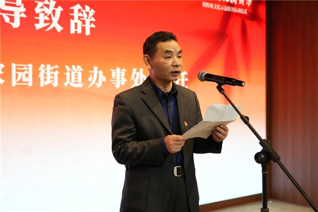街道办事处主要领导现场致辞,潘家园街道积极建立文化产业协同发展机制,促进辖区文化企业实现资源共享,提升服务品质,实现文化产业发展繁荣,共同营造潘家园地区浓厚的文化氛围,为五宜朝阳建设贡献潘家园力量。