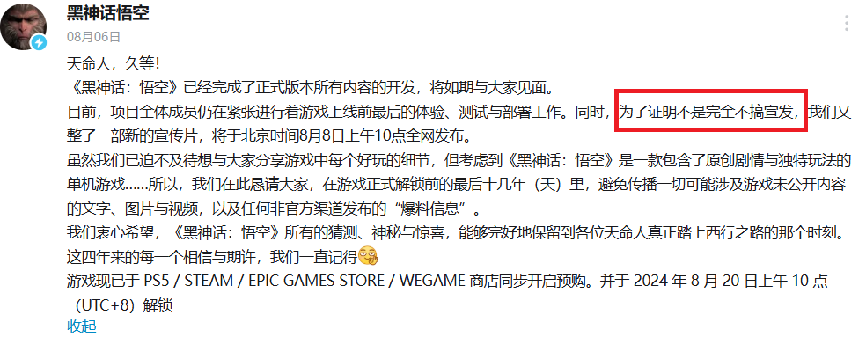 好在游戏科学可能深谙捧杀之道,对于外界的联系与回应都相当克制。