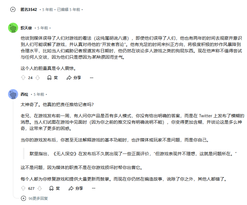 某种意义上,他是在把《无人深空》的舆论失控怪罪于媒体。