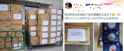 ▲资料图:大王elis卫生巾捐赠现场及网友分享