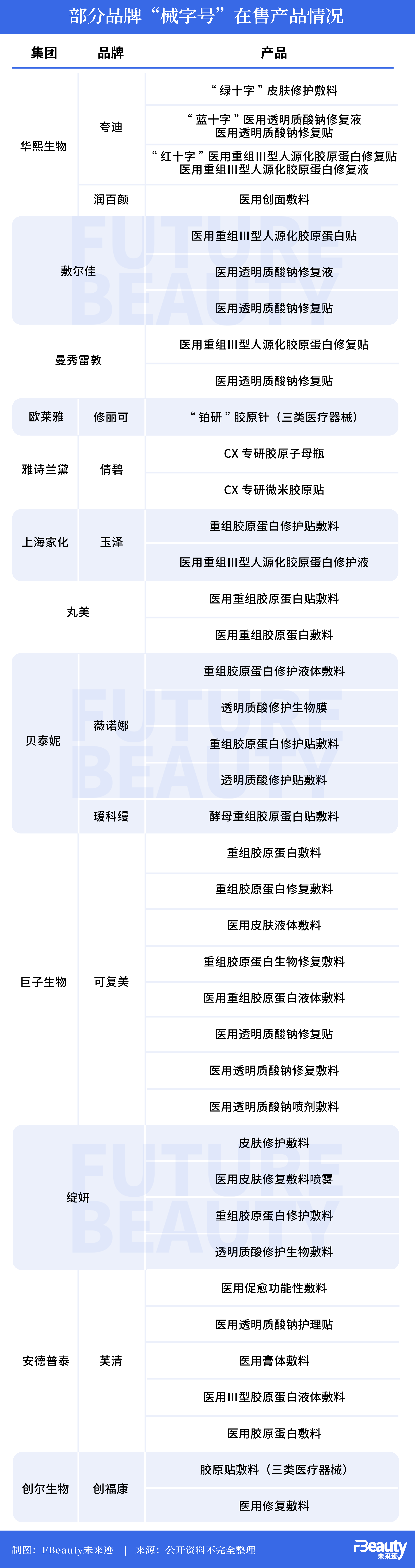 从华熙生物、巨子生物、贝泰妮、上海家化等头部国货企业,到外资集团欧莱雅、雅诗兰黛。在医学美容和生活美容大融合的趋势下,头部企业纷纷开始通过“械字号”产品来寻求市场的新发力点。