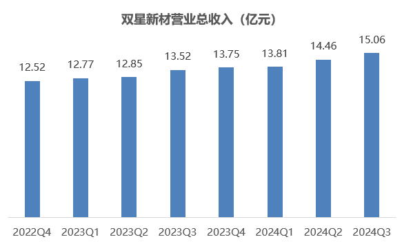 自2023年以来,双星新材在高基数的基础上,营收、产销量依旧保持稳健增长,2024年前三季度,公司实现营收43.33亿元,同比增长10.70%,展现出其强大的市场适应能力和稳固的行业地位。
