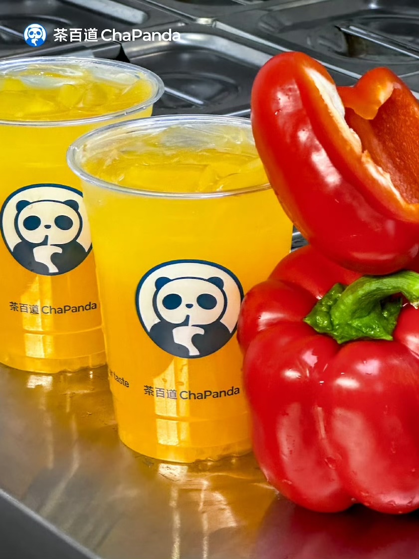 比如茶百道最近推出的新品“维C速燃甜椒”加入了甜椒果蔬汁、甜椒果肉块,与七窨茉香雪芽茶底进行搭配;乐乐茶近期也推出紫色的“鲜配发光瓶”,给饮品里加入了紫甘蓝、苹果等果蔬。而无论是鲜果茶里加辣椒或是加紫甘蓝,这类差异化微创新也与市面上一片绿油油的呈现有一定区分。