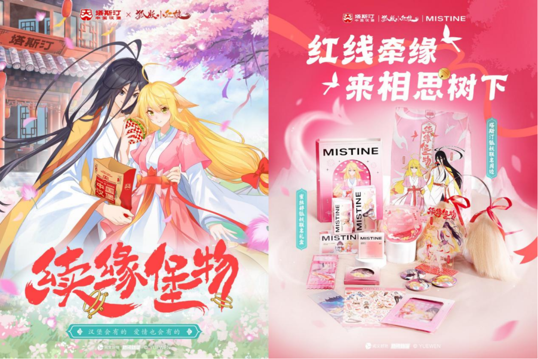 今年七夕,塔斯汀中国汉堡与经典国漫IP《狐妖小红娘》联动,除了定制联名周边和主题店外,还联手打造了IP动画内容,选择高人气月红CP为支点,定制打造番外篇TVC《续缘堡物》,在粉丝中得到了不错的反馈。