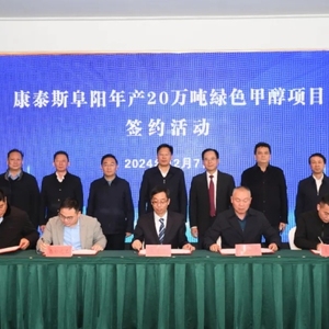 12月7日,总投资12.5亿元的康泰斯年产20万吨绿色甲醇项目签约落户阜阳,标志着阜阳市低碳能源未来产业再添生力军。市委书记刘玉杰,康泰斯(上海)化学工程有限公司董事长马贤银,市委常委、市委秘书长王波,上海森松化工、安徽灵通集团等企业代表见证签约。