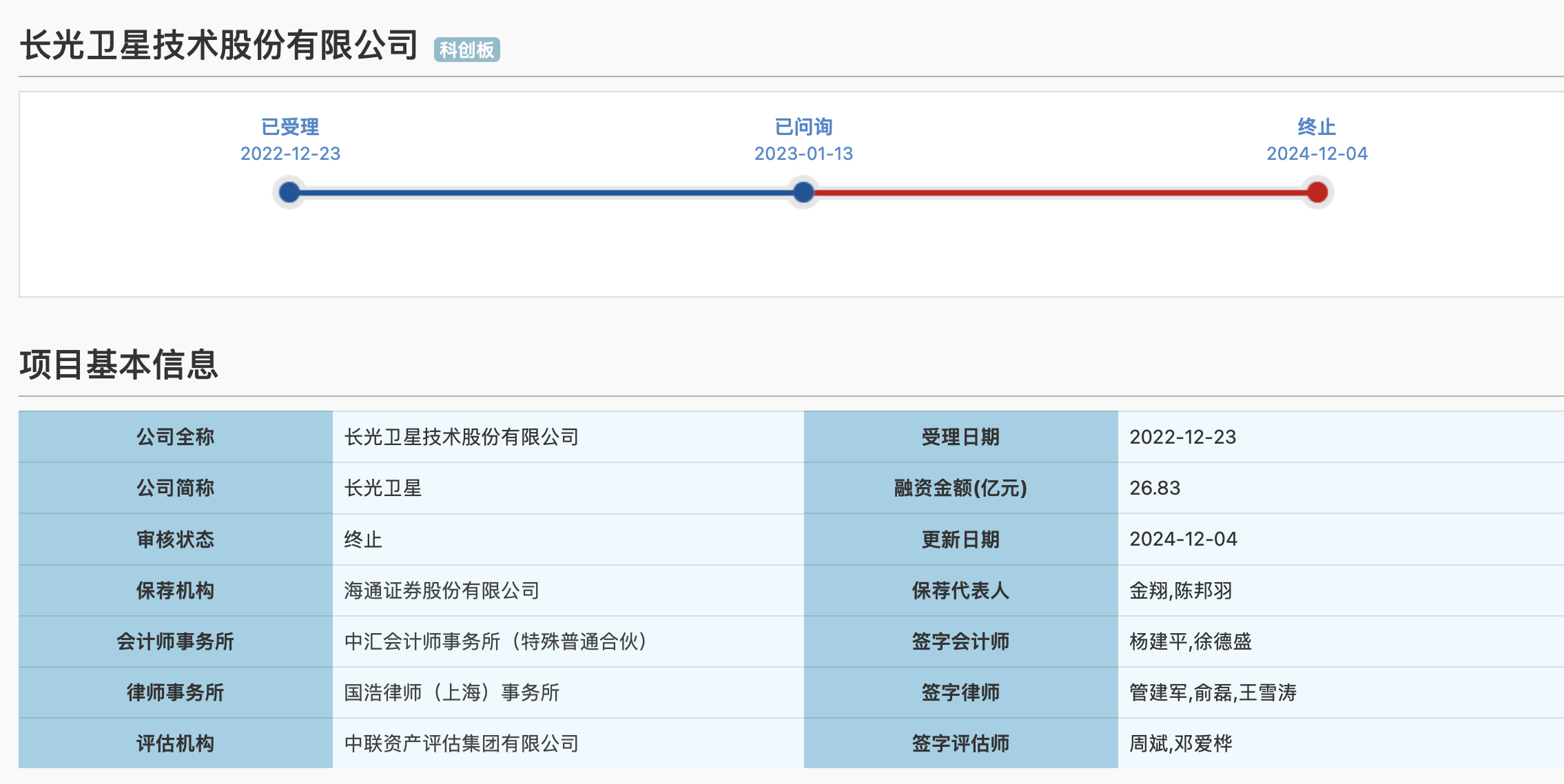 长光卫星原计划登陆科创板。12月4日,上海证券交易所官网显示,其IPO已经终止,原因是长光卫星及保荐人海通证券申请撤回申请文件。这也宣告该公司长达两年的上市计划失败。