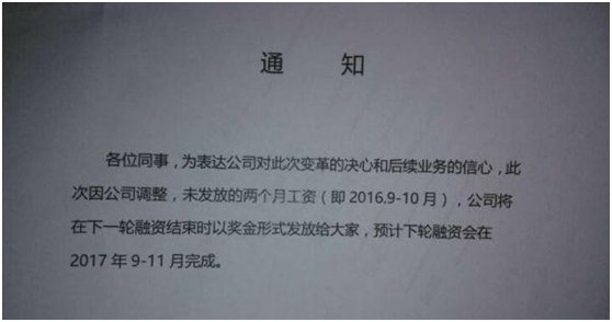 不料,距桂小琰的发言不到一年,2016年9月29日,Skye公司称“已和本轮两位投资方达成框架性的投资意向。因市场整体环境比较冷淡,以及我司产品进展缓慢和财务资金管理不到位等因素使现金流近段时间出现一定的问题”,而当时Skye曾与员工协商“未发放的两个月工资,会在下一轮融资结束时以奖金形式发给大家,融资预计在2017年9—11月完成”。