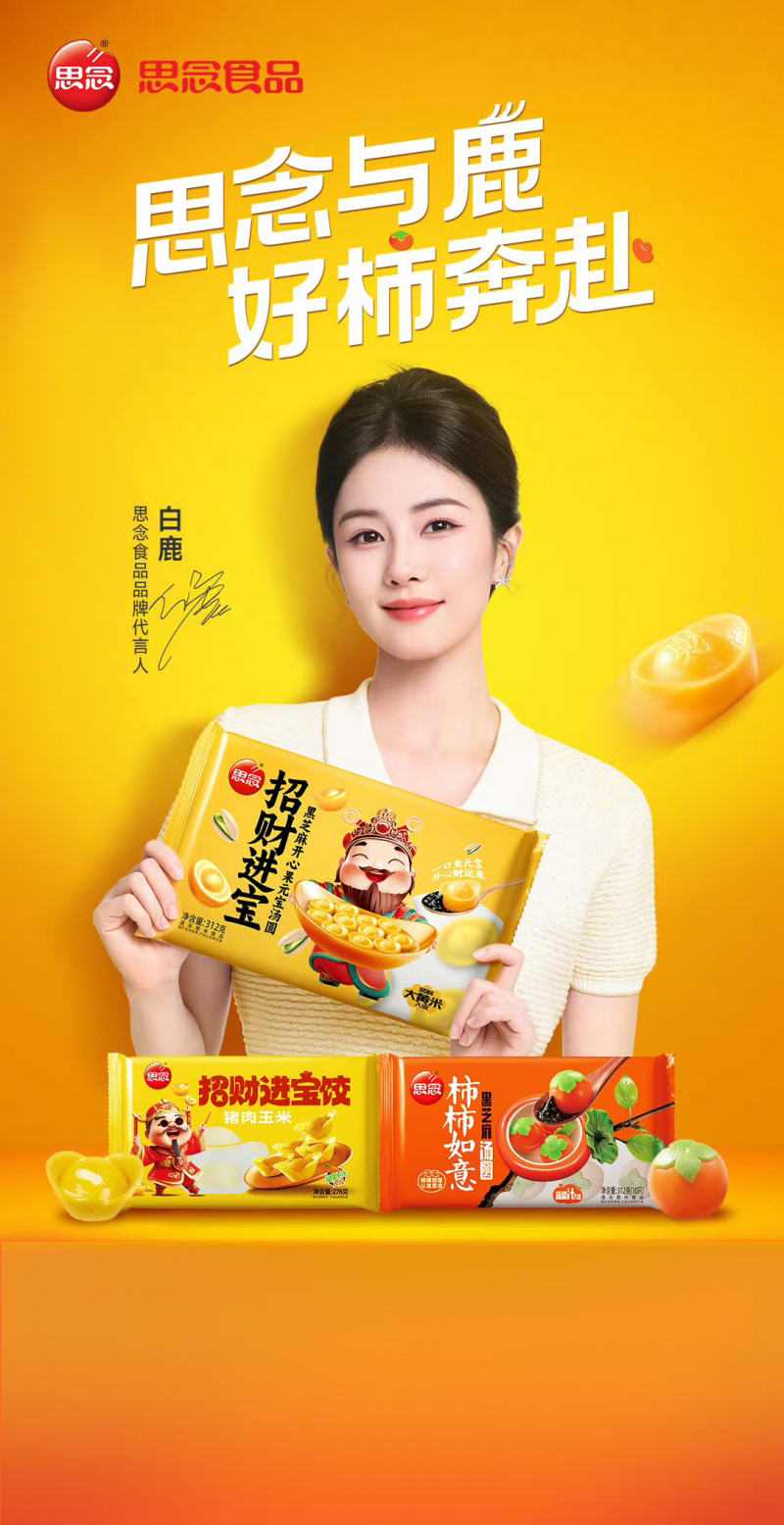 2024年12月9日,思念食品有限公司(以下简称“思念食品”)正式官宣全能型演员白鹿成为其品牌形象代言人,品牌依托明星效应与年轻化消费群体深度互动,塑造国民品牌新形象。并同步推出新品“招财进宝汤圆”和“小柿也如意汤圆”,双方将以“好柿”为起点,共同开启“一LU好柿”的美味之旅。