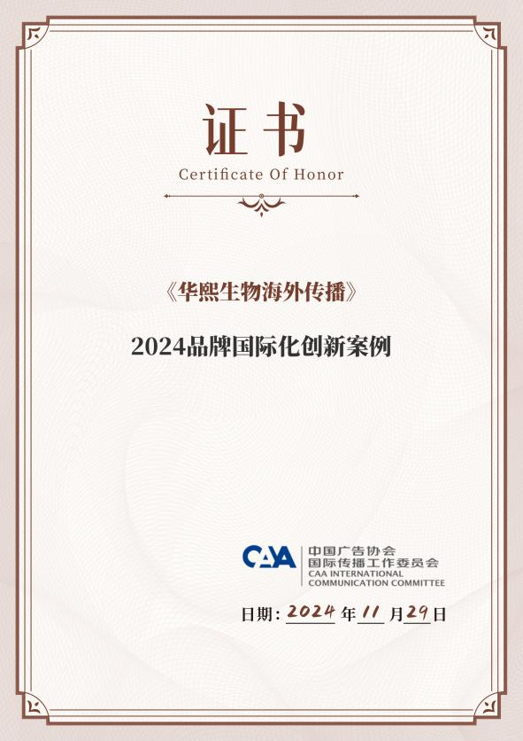 在全球经济一体化加速、品牌竞争日益激烈的背景下,中国品牌正以更加坚定的步伐和创新的精神走向世界舞台。其中,作为生物科技行业的领军者,华熙生物凭借其卓越的国际化战略和显著的海外传播成果,荣获了由中国广告协会国际传播工作委员会颁发的“2024品牌国际化创新案例”奖项,这一荣誉不仅是对华熙生物品牌国际化努力的肯定,也为中国品牌国际化进程提供了宝贵的经验启示。