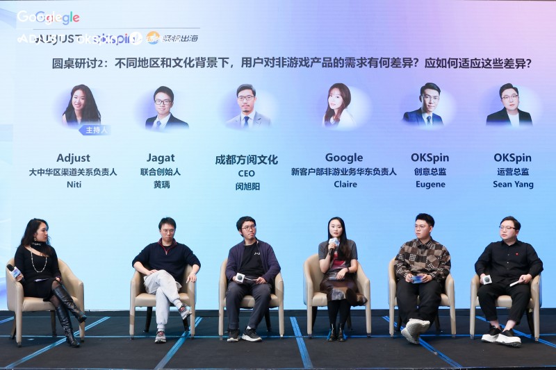 闭门会还特邀成都Top级社交APP开发者—Jagat联合创始人黄瑀,短剧开发者—成都方阅文化CEO闵旭阳,以及Google新客户部非游业务华东负责人Claire和OKSpin运营总监Sean Yang,创意总监Eugene参与圆桌研讨会。嘉宾们围绕用户留存、忠诚度提升、本地化适应策略等议题展开讨论,分享了社交产品和短剧产品在不同市场的成功案例和未来规划。