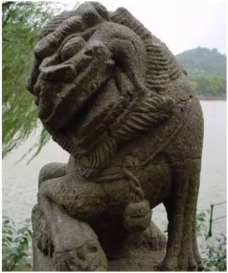 元代的石狮子已经从唐代的神化转变为写实,从以前的威严凶猛变得稍显拘谨腼腆,四肢收束靠拢。到了明代,狮子造型用途广泛,织造印染狮、金属狮、陶瓷工艺玩具狮不胜枚举。