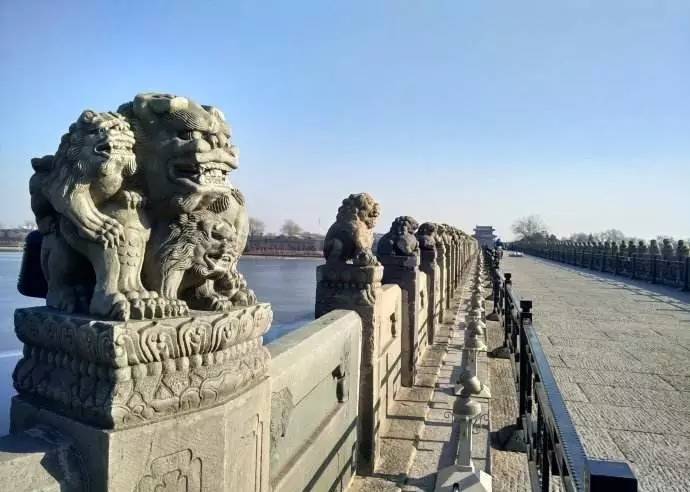 卢沟桥始建于1189年(金代),是北京现存最古老的联孔石桥,桥身有281根望柱,柱头上的501头石狮雕刻跨越了金代、元代、明代、清代、民国,到如今已是六个时代,最年轻的狮子仅20岁,前后跨度800多年……
