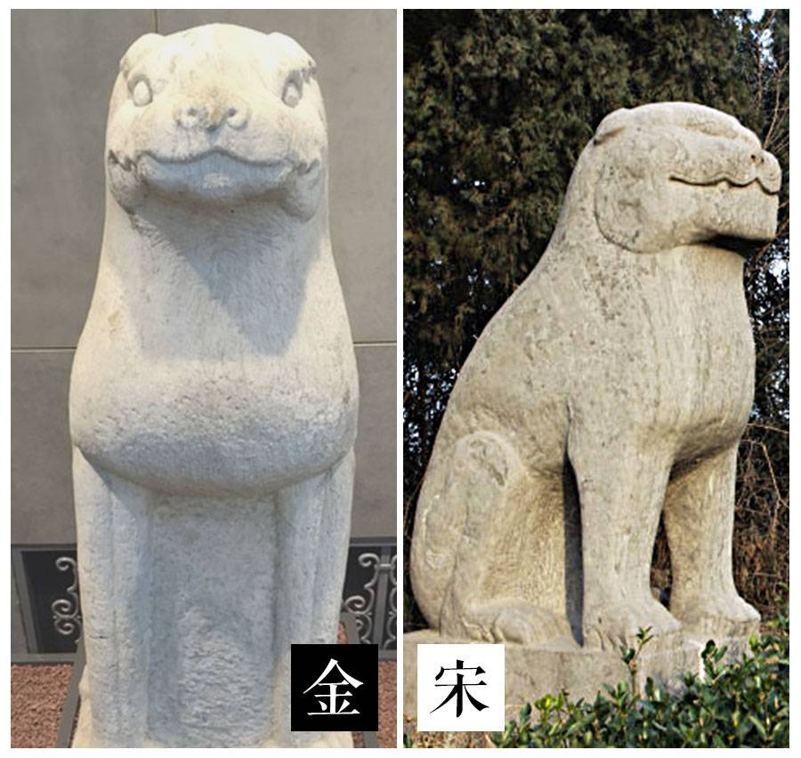 下图左侧的是金代王公贵族陵园中的石虎,右侧是宋永定陵神道的石虎。从制作工艺上讲还是宋代的更为精致,但少了一分圆浑粗犷。