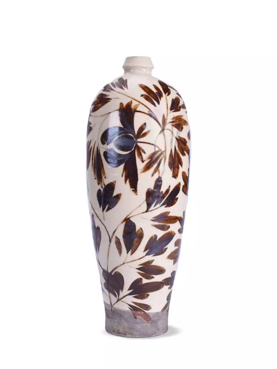 了如三舍藏 金白釉铁锈花牡丹纹梅瓶