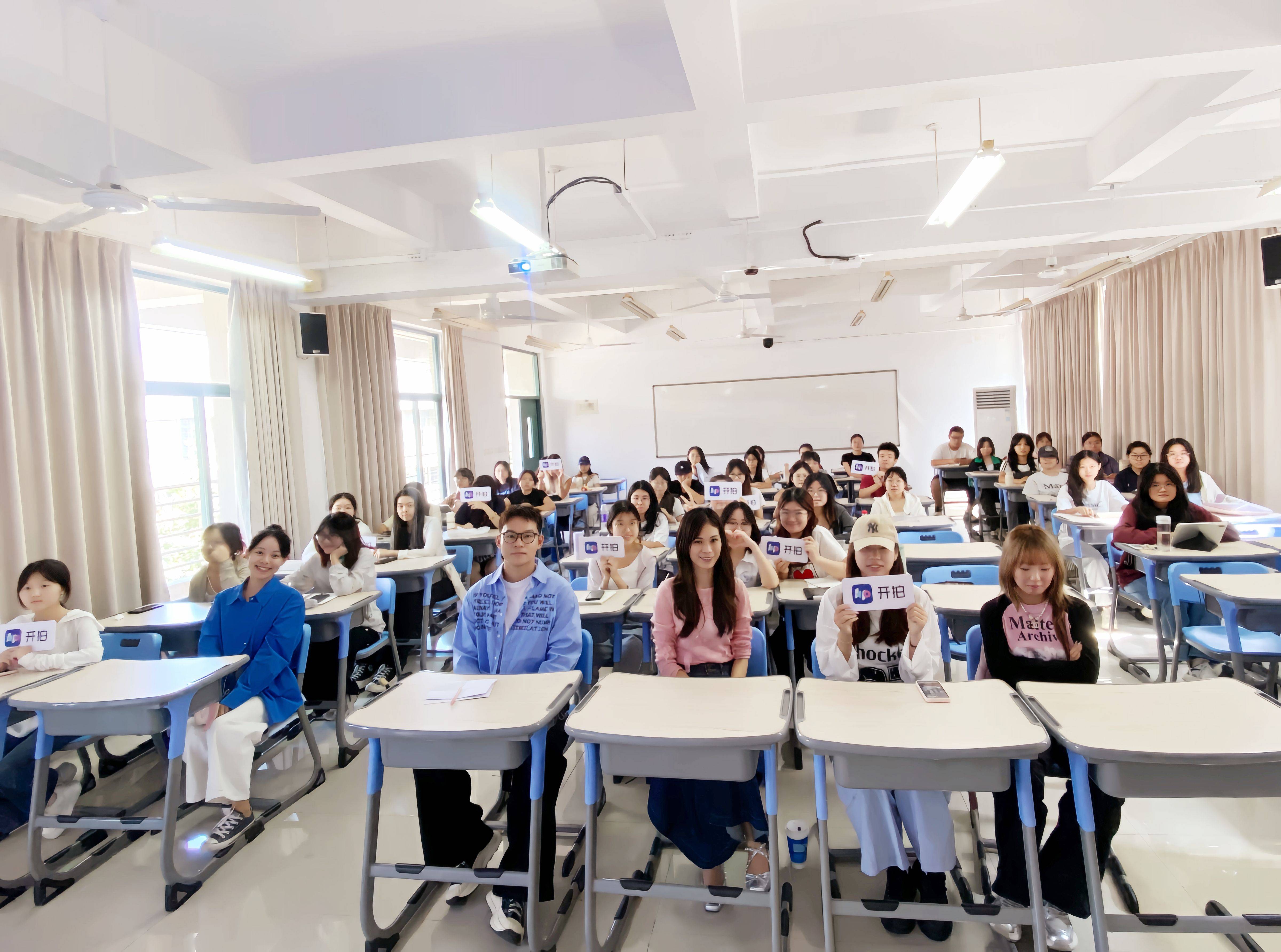 在这之前,开拍已经走进华侨大学新闻与传播学院的课堂,帮助大学生学习自媒体内容创作技巧,学生们对开拍的三大核心功能“AI帮你写+AI帮你拍+AI帮你剪”颇感兴趣,希望通过进一步的学习,高效提升口播视频的制作效率及质量。