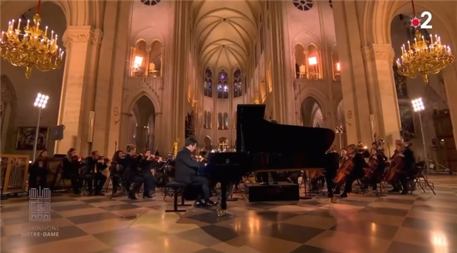 据悉,2019年郎朗就曾参加巴黎圣母院火灾后的致敬音乐会。这一次,他携手杜达梅尔指挥的法国广播爱乐乐团,演奏了圣·桑《第二钢琴协奏曲》“终曲”,祝贺巴黎圣母院的重生。此外,郎朗独自演绎了李斯特《爱之梦》,以精湛的钢琴演奏技巧,让这场跨越历史与国界的演奏,在爱与艺术的交融中再次升华,将音乐的魅力展现地淋漓尽致。