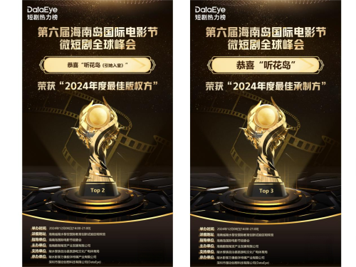 12月8日,第六届海南岛国际电影节微短剧全球峰会活动在海南举行,十月初五影视旗下的短剧厂牌听花岛,荣获2024年度最佳版权方以及2024年度最佳承制方;《闪婚老伴是豪门》荣获2024年度最佳热剧;赵佳凭借其在《引她入室》和《妖妃在上》中的出色表现,荣获2024年度最佳女主角。
