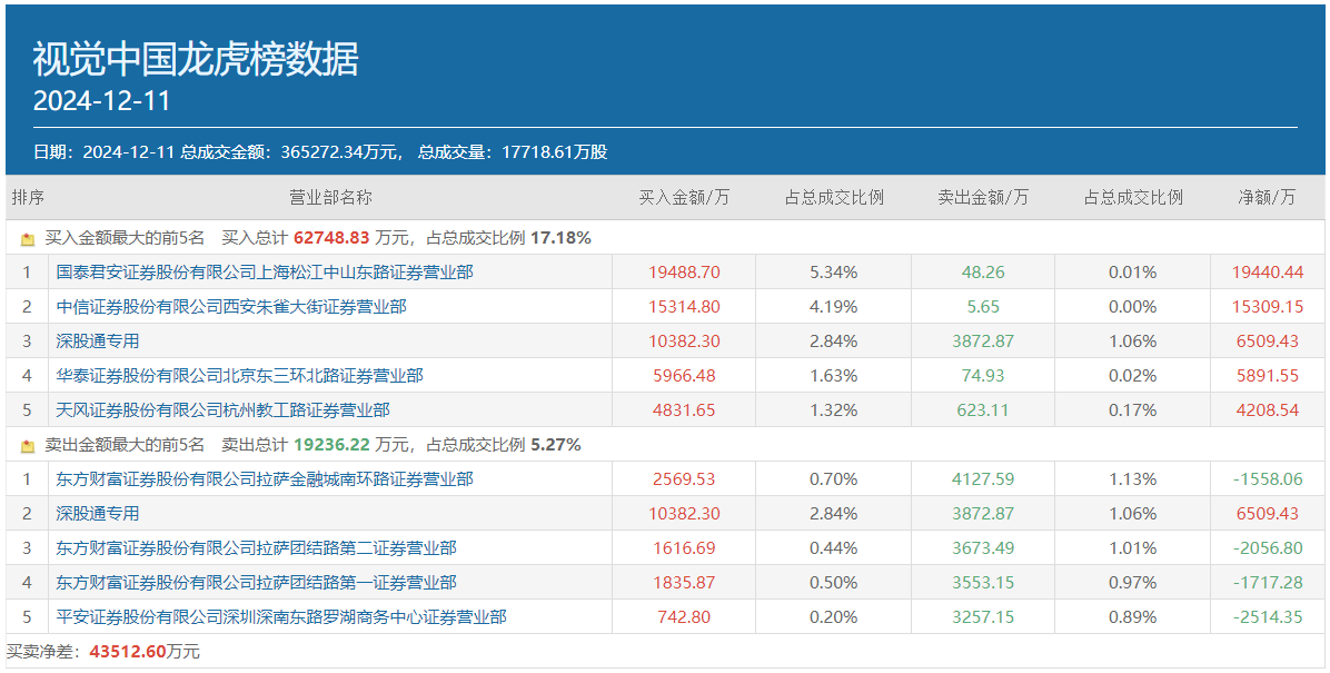 盘后披露的龙虎榜数据显示,视觉中国当日买方前两位被知名游资常用席位所占据,其中国泰君安证券上海松江中山东路高居买方榜首,买入金额为1.95亿元,方新侠的常用席位中信证券西安朱雀大街紧随其后,以1.53亿元的买入额居于买方第二位。