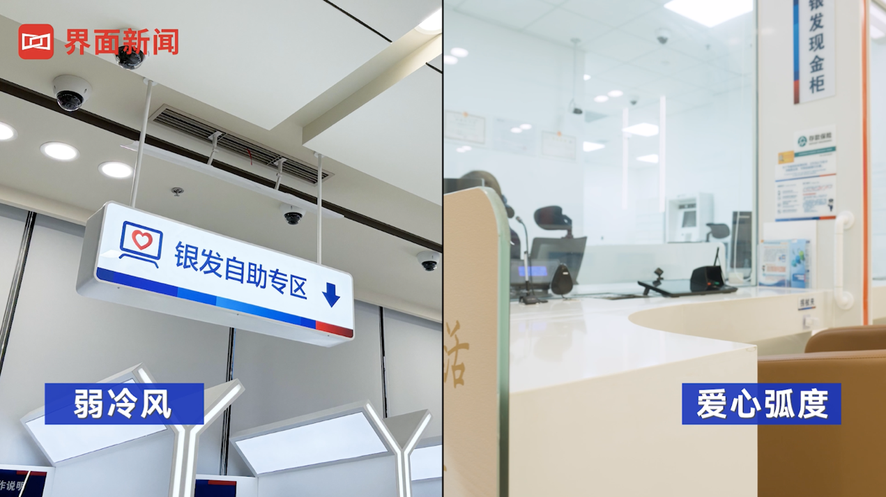 放眼望去,杨浦支行进行了全面适老化服务改造。等候区沙发,现金区安装扶手,配备放大镜、老花镜、轮椅等一系列便民工具……细微之处见真章。银发爱心现金柜,独具匠心的设计了“爱心弧度”,能更好的满足银发客户在现金办理业务的舒适度。银发理财规划服务区,弱冷风区设计和防滑脚垫能方便轮椅和拐杖客户的进出。