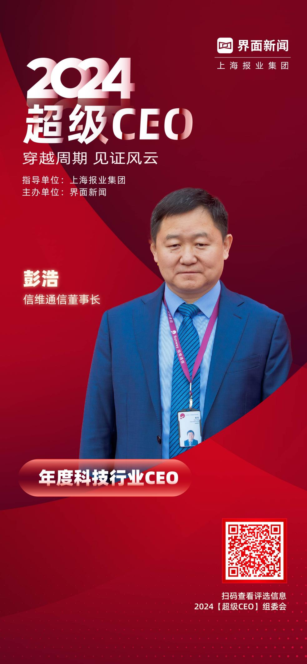 信维通信董事长兼总经理彭浩先生登陆界面新闻「2024年度科技行业CEO榜单」。