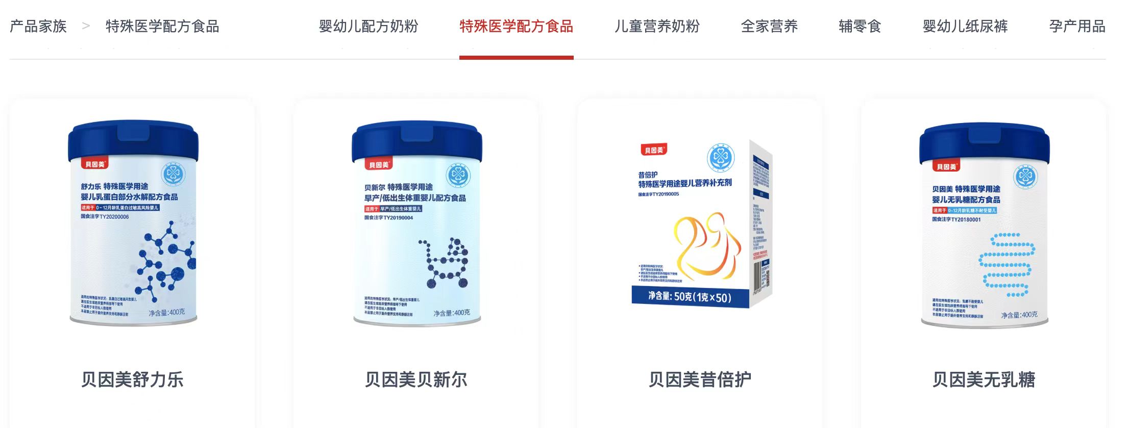 目前科露宝官网上的产品介绍页面并无显示上述贝因美产品。界面新闻自公开检索看到部分终端门店的进货信息,其显示,这些科露宝所代理的贝因美产品具体为“贝因美贝新尔特殊医学用途早产/低出生体重婴儿配方食品”、“贝因美舒力乐特殊医学用途婴儿乳蛋白部分水解配方食品”、“贝因美特殊医学用途婴儿无乳糖配方食品”等几款。